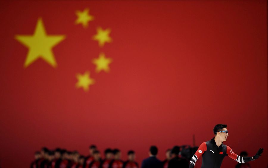 Wu Dajing is seen on the opening ceremony of 2019-2020 Season SpeedSkating Direct International Competition Trials held in Beijing Erqi National Winter Sports Training and Research Base in Beijing, Oct. 10, 2019. (Xinhua/Tao Xiyi)