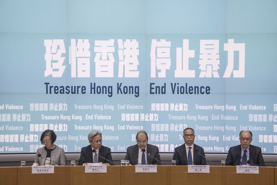 Matthew Cheung (C) , Chief Secretary for Administration of China's Hong Kong Special Administrative Region (HKSAR), speaks at a press conference in Hong Kong, south China, Oct. 10, 2019. (Xinhua/Lu Ye)