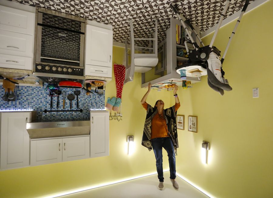 A visitor tours the Upside Down House at the Museum of Illusions in Los Angeles, the United States, on Oct. 9, 2019. Located at Hollywood of Los Angeles, the Upside Down House features seven upside down rooms, attracting lots of visitors. (Xinhua/Li Ying)