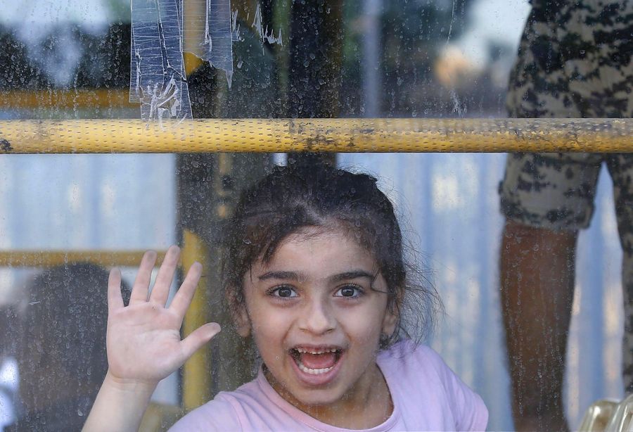 A Syrian girl goes on a homebound trip by bus from Beirut, Lebanon on Oct. 10, 2019.