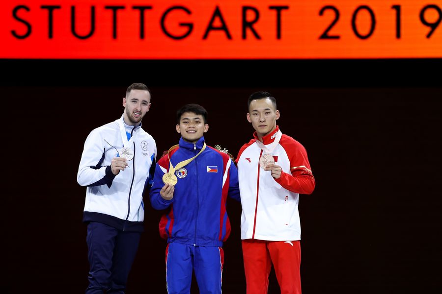 Carlos Edriel Yulo of the Philippines, who already made history in 2018 with his bronze medal on floor, became the Philippines' first world champion in any gymnastics discipline.