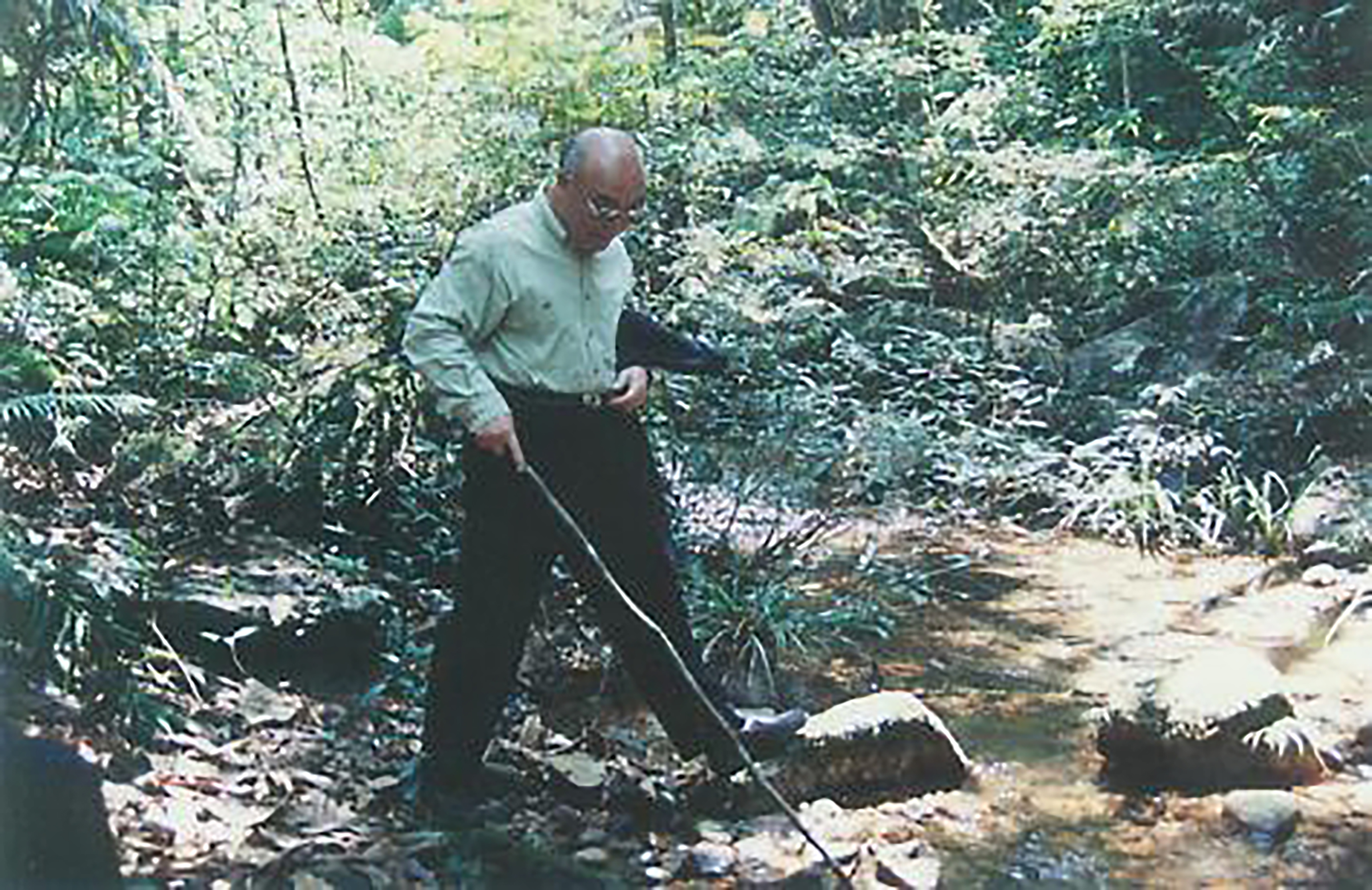 This file photo taken in the 1990s shows Ma Jianzhang doing a field survey at the Jiulian Mountain national nature reserve in east China's Jiangxi Province. (Xinhua)