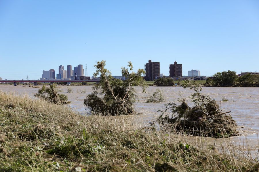 Photo taken on Oct. 13, 2019 shows trees swept down by the flood in Tokyo, Japan. (Xinhua/Ma Caoran)