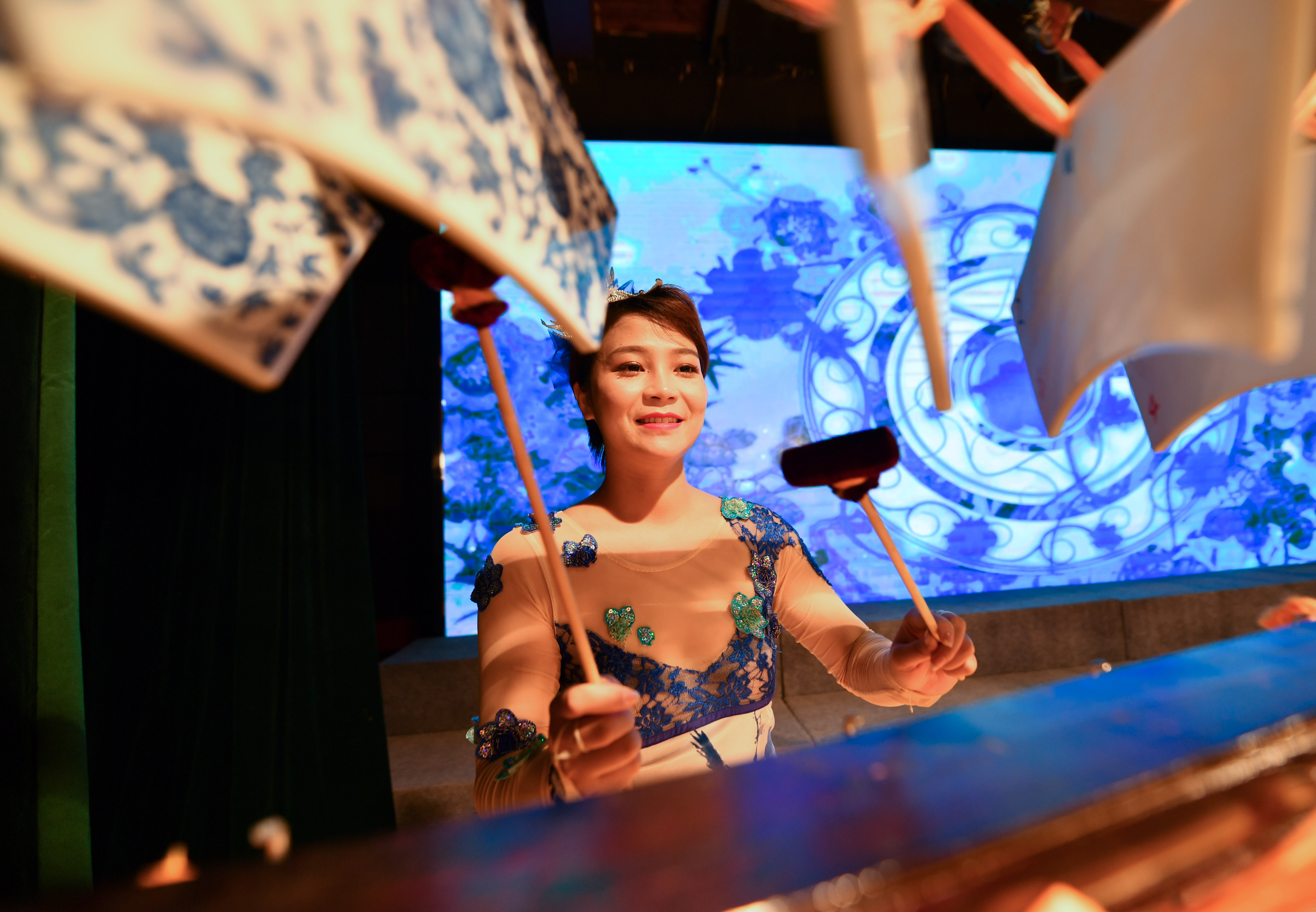 Pretty and practical: Musical instruments made of porcelain are staged in the porcelain-making center in east China's Jiangxi.