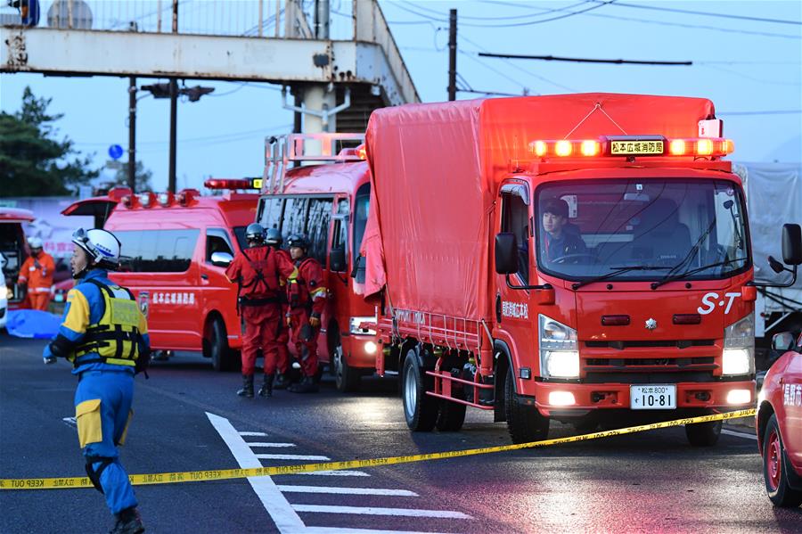 TOKYO, Oct. 14 (Xinhua) -- Typhoon Hagibis, which swept across central and eastern Japan on Saturday and Sunday, has claimed at least 36 lives in Japan as of Monday as search-and-rescue operations continued in flood- and landslide-hit areas of Nagano and other prefectures.