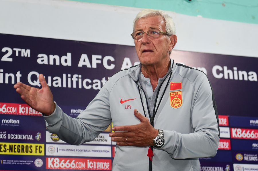 Lippi makes brief introduce of China's preparation for the World Cup Asian qualifier against the Philippines at the pre-game press conference in Bacolod on Oct. 14. (Xinhua/Du Yu)