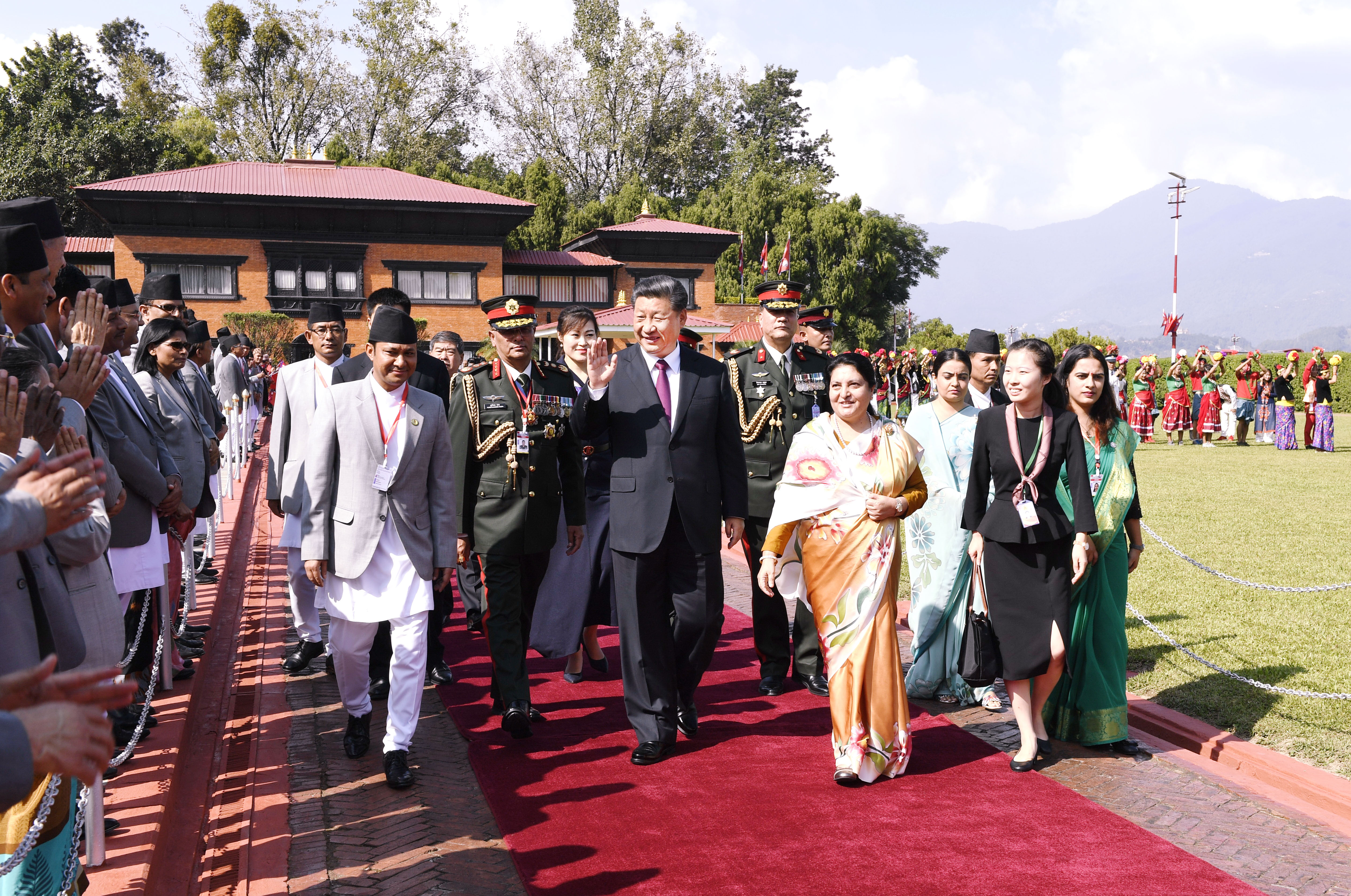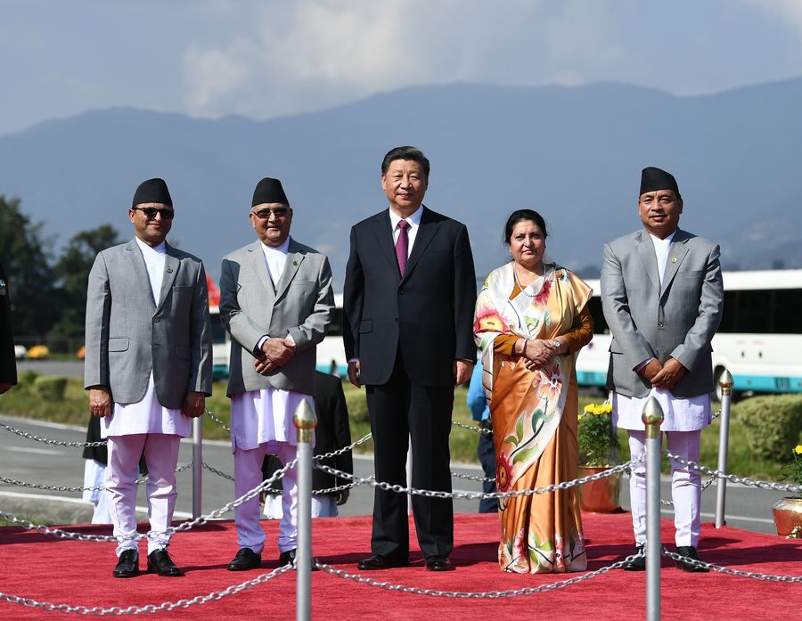 The Chinese president received a warm welcome in capital Kathmandu, where the national flags of China and Nepal, as well as portraits of Xi and Bhandari, were installed on almost every lamp post along the streets that Xi travelled.