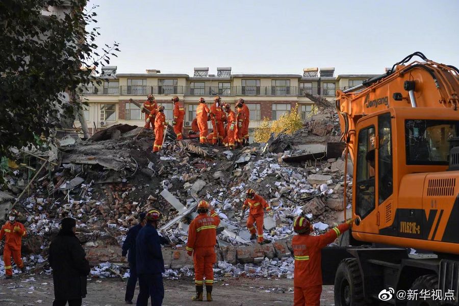 Rescuers work at the site where a bank's office building collapses on Oct. 14, 2019 in the city of Baicheng, northeast China's Jilin Province. (Xinhua)