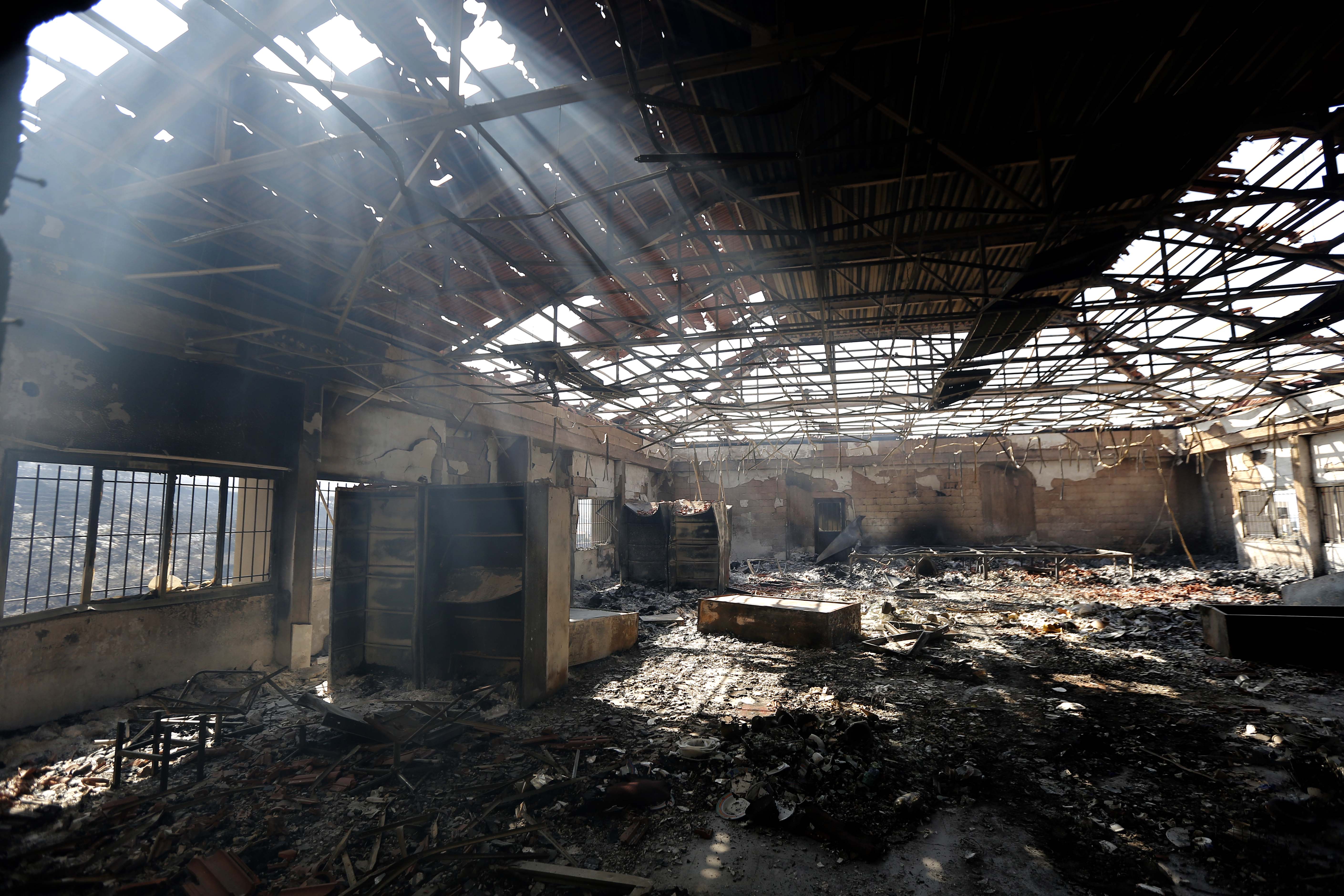 A rescue center for disabled persons is damaged after a fire in Damour District, south of Beirut, Lebanon, Oct. 16, 2019. Hectares of mountains and a number of houses were destroyed by the wildfires in the Mount Lebanon areas. (Photo by Bilal Jawich/Xinhua)