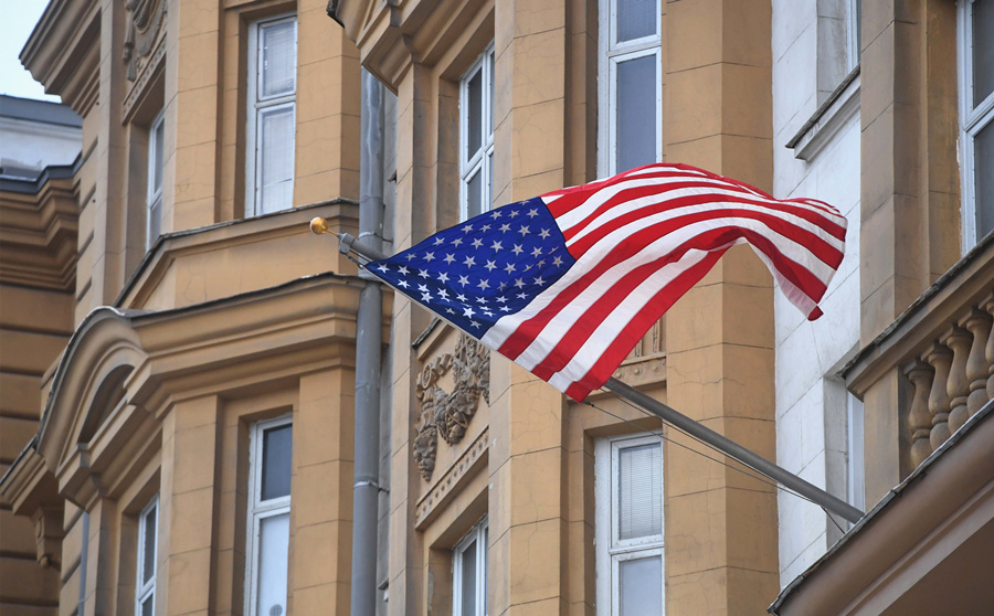 Photo taken on Dec. 30, 2016 shows the U.S. national flag on the U.S. Embassy building in Moscow, Russia. (Xinhua/Sputnik)