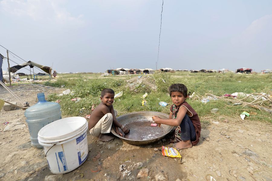 Children play at a slum on the outskirts of Rawalpindi, Pakistan, on Oct. 17, 2019. (Xinhua/Ahmad Kamal)
