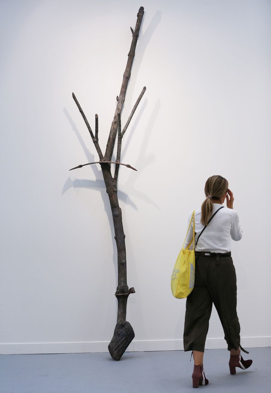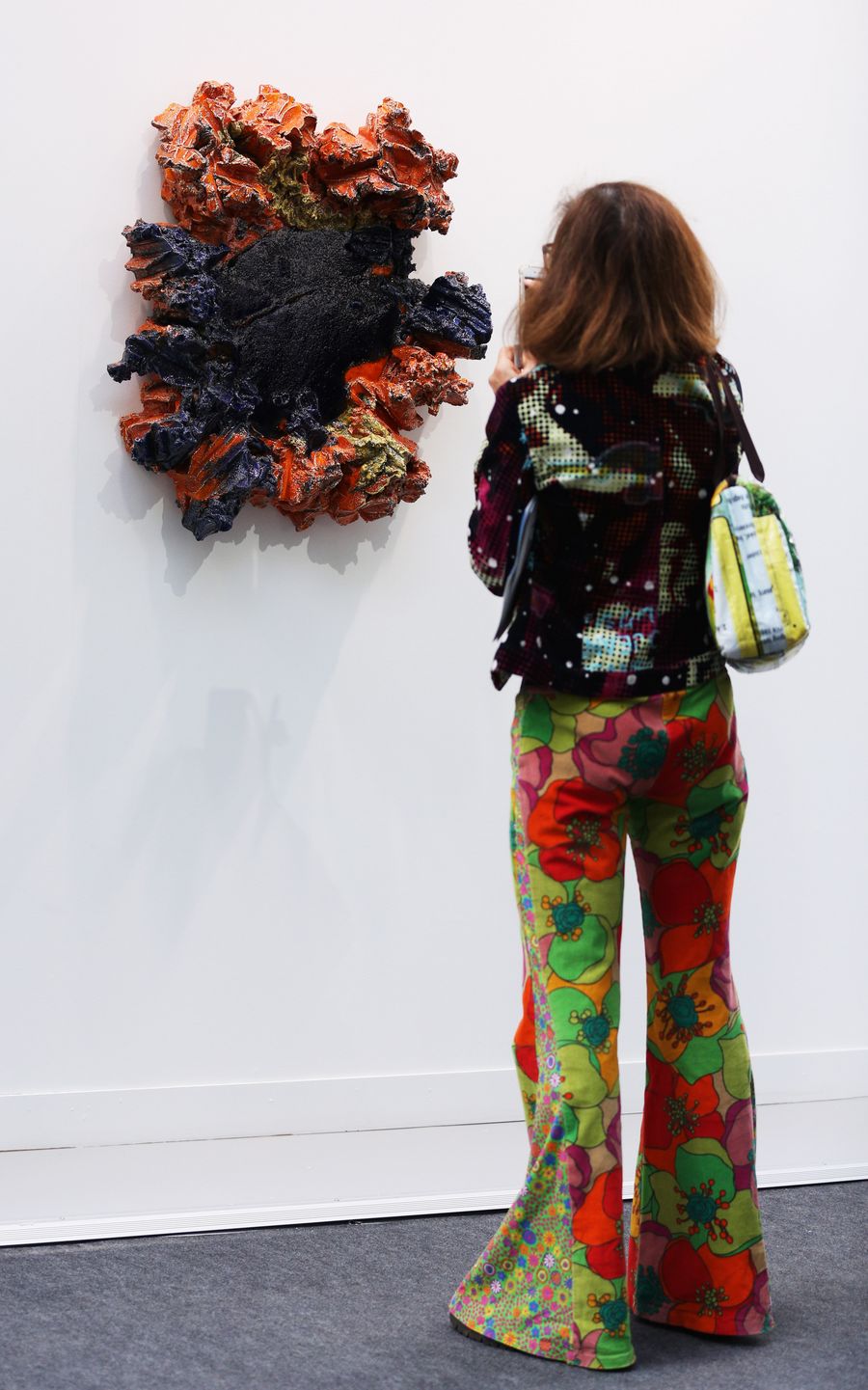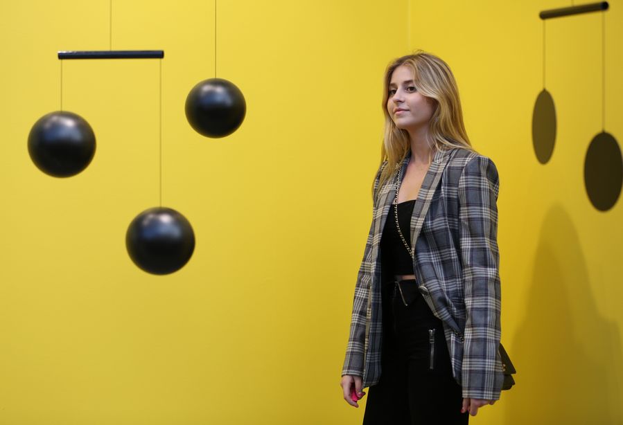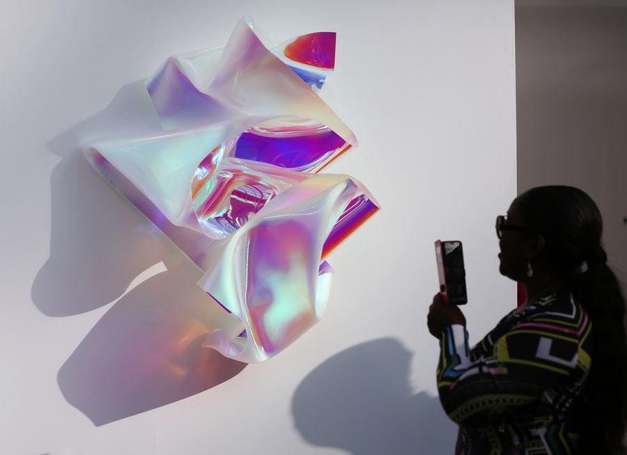 A woman visits the 2019 International Contemporary Art Fair (FIAC) at the Grand Palais in Paris, France, Oct. 17, 2019. (Xinhua/Gao Jing)