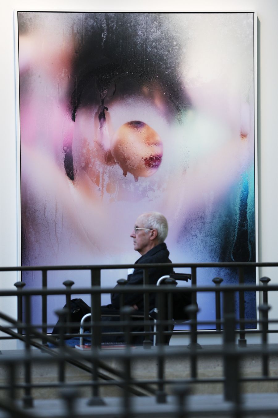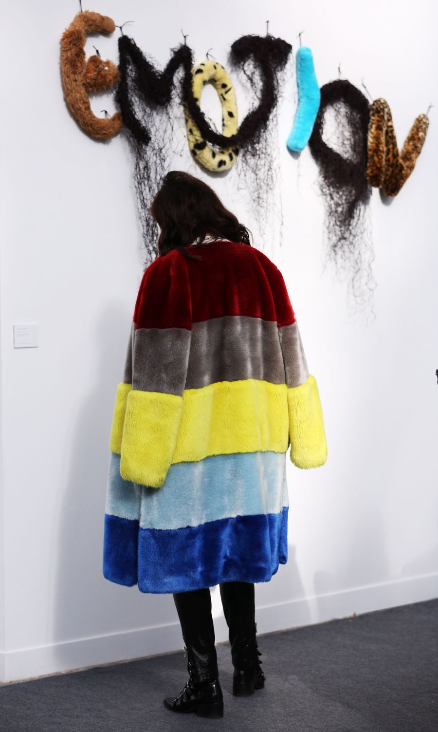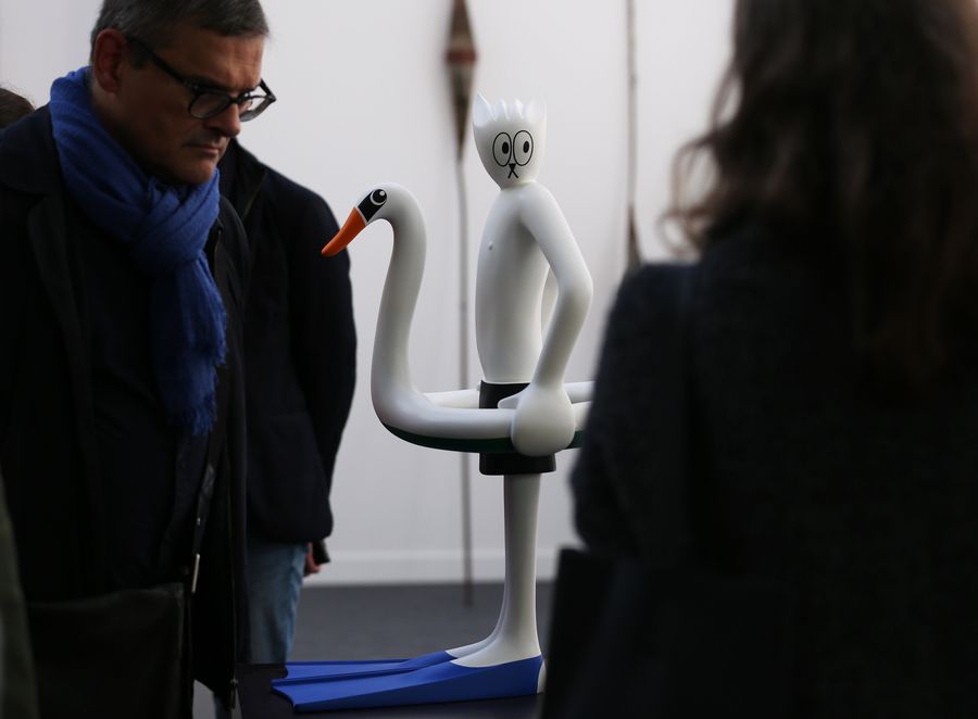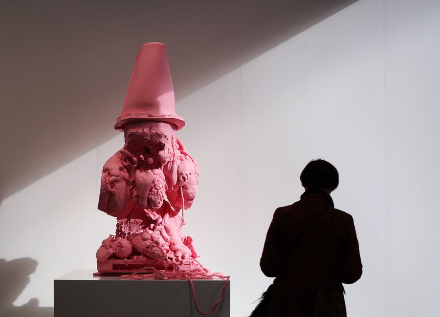 A visitor rests during the 2019 International Contemporary Art Fair (FIAC) at the Grand Palais in Paris, France, Oct. 17, 2019. (Xinhua/Gao Jing)