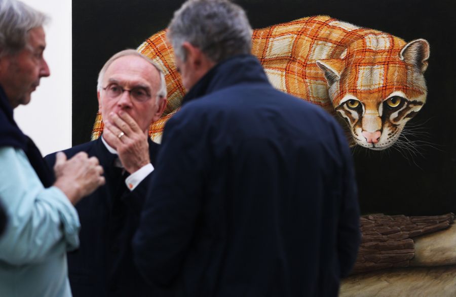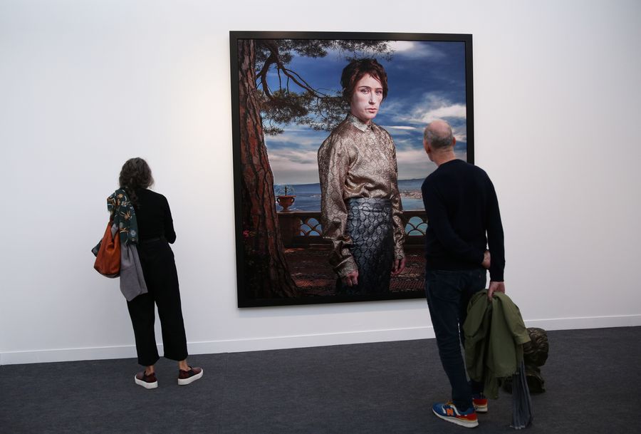 People visit the 2019 International Contemporary Art Fair (FIAC) at the Grand Palais in Paris, France, Oct. 17, 2019. (Xinhua/Gao Jing)