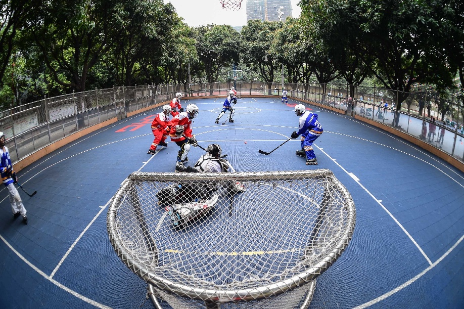 Players of inline hockey squad from Guangzhou No. 41 middle school attend a training session in a rink in Guangzhou, capital of south China's Guangdong province, March 16, 2017. (Xinhua/Liu Dawei)