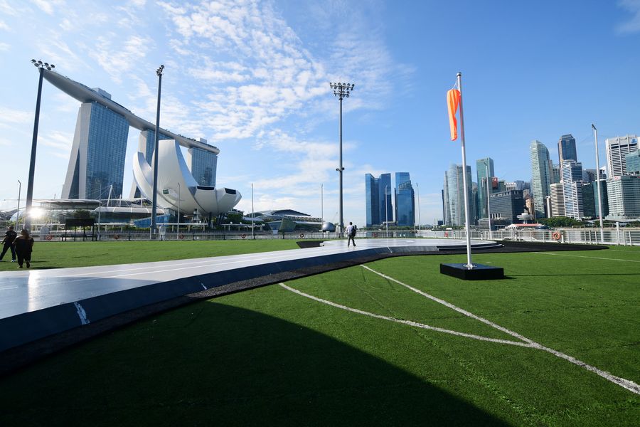 They have built up here the VoloPort prototype on the Float at Marina Bay, the only physical infrastructure required for so called eVTOL (electric vertical take-off and landing) passenger air taxis to take off and land. Volocopter will be performing a maiden test flight in city, flying off from the protoype VoloPort around the Marina Bay area on Oct 22, 2019.
