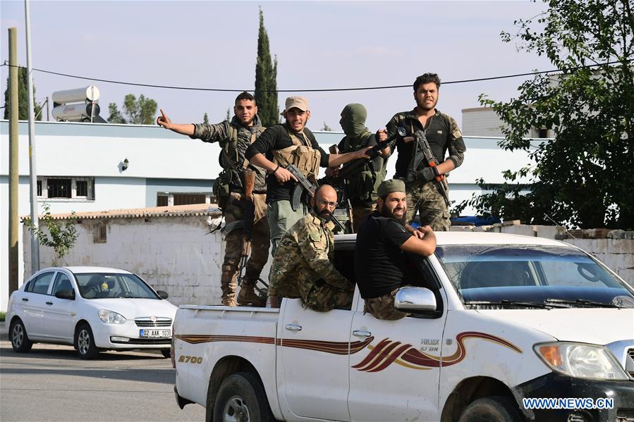 Members of Syrian rebel groups allied with Turkey are seen in the Turkish border town of Ceylanpinar, on their way to northern Syrian town of Ras al-Ayn, on Oct. 23, 2019. Turkish Defense Ministry said on Wednesday that there is no need for new operation outside the present operation area, as the United States has confirmed that the withdrawal of the Kurdish People's Protection Units (YPG) has completed. (Xinhua)