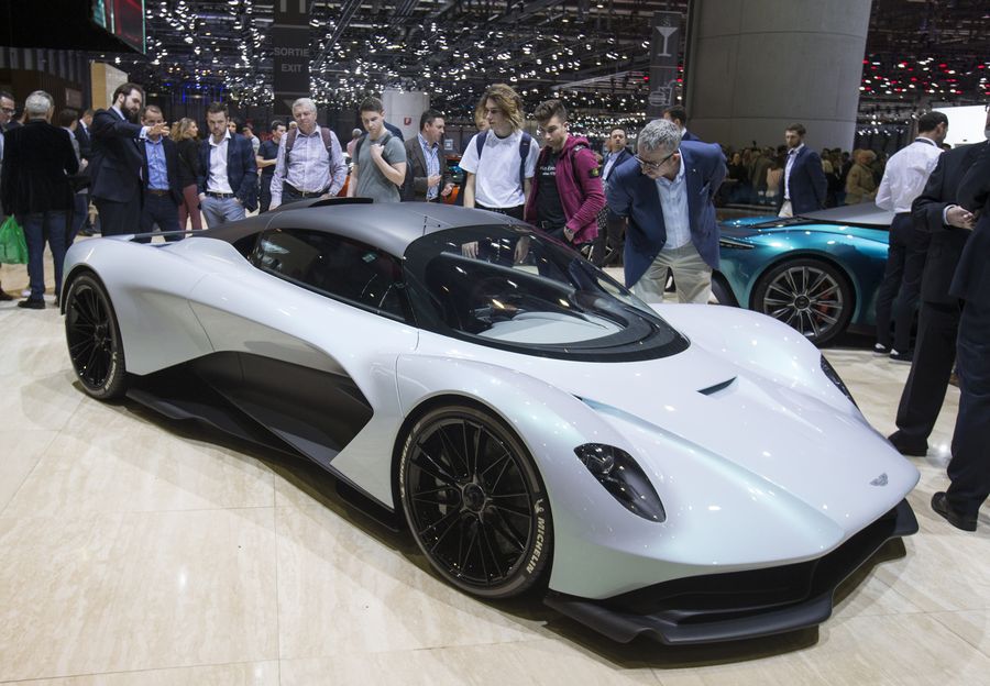 People watch the Aston Martin AM-RB 003 hypercar at the 89th Geneva International Motor Show in Geneva, Switzerland, March 7, 2019.(Xinhua/Xu Jinquan)