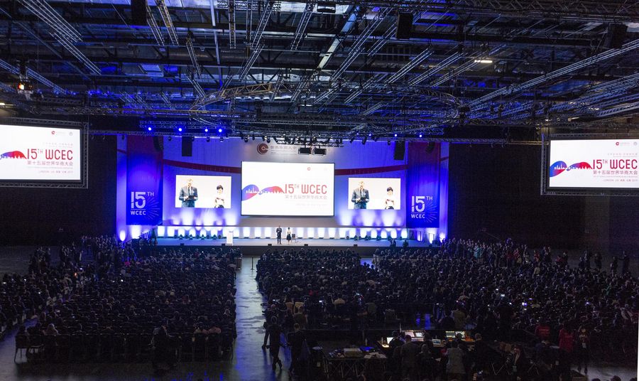 Delegates attend the 15th World Chinese Entrepreneurs Convention (WCEC) in London, Britain, Oct. 22, 2019.(Photo by Ray Tang/Xinhua)