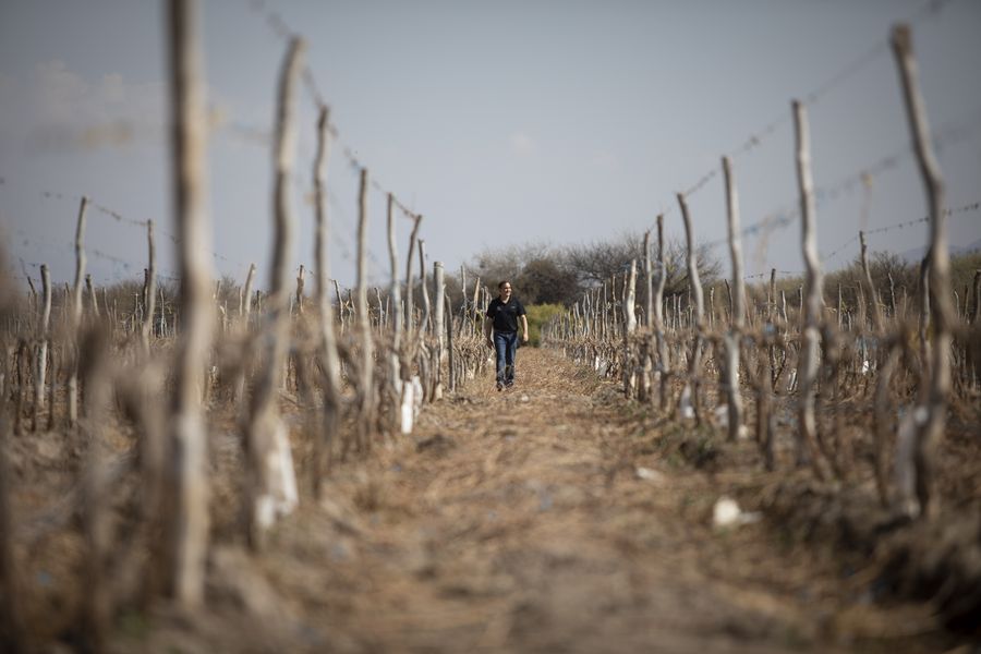 A worker walks in a vineyard in Catamarca of Argentina, Sept. 25, 2019. (Xinhua/Martin Zabala)
