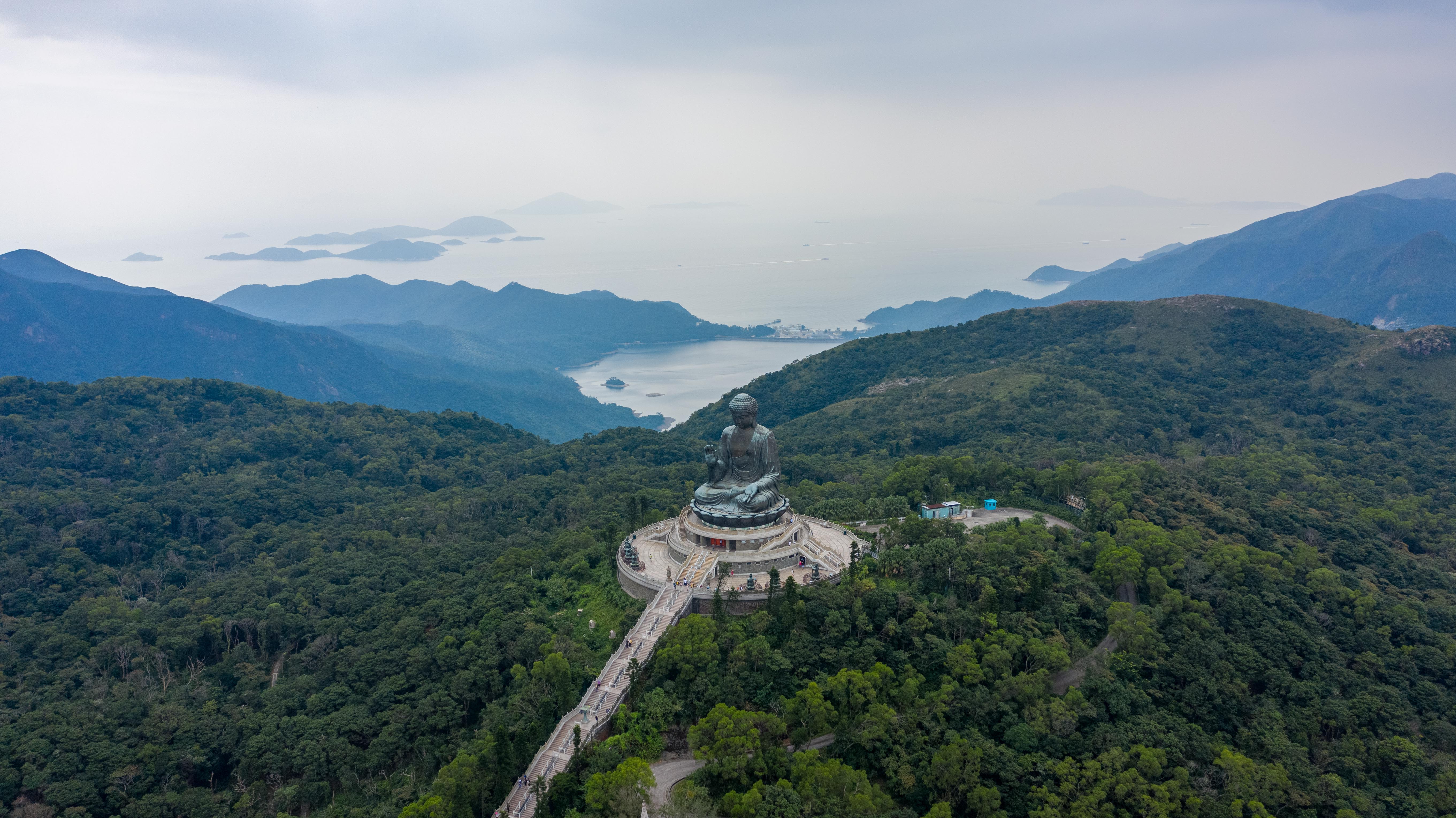 Aerial photo taken on Oct. 24, 2019 shows a view of the Giant Buddha in Lantau Island of south China's Hong Kong. (Xinhua/Cheong Kam Ka)