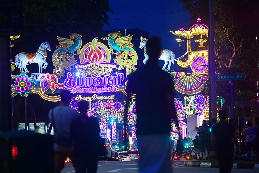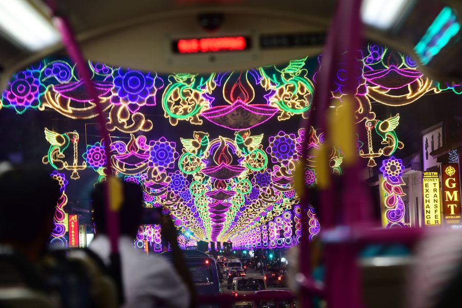 Deepavali Festival lights illuminate a road along Singapore's Little India on Oct. 26, 2019. (Xinhua/Then Chih Wey)