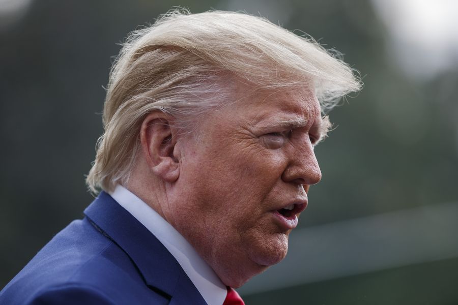 U.S. President Donald Trump speaks to reporters before leaving the White House in Washington D.C., the United States, on Oct. 25, 2019. (Photo by Ting Shen/Xinhua)