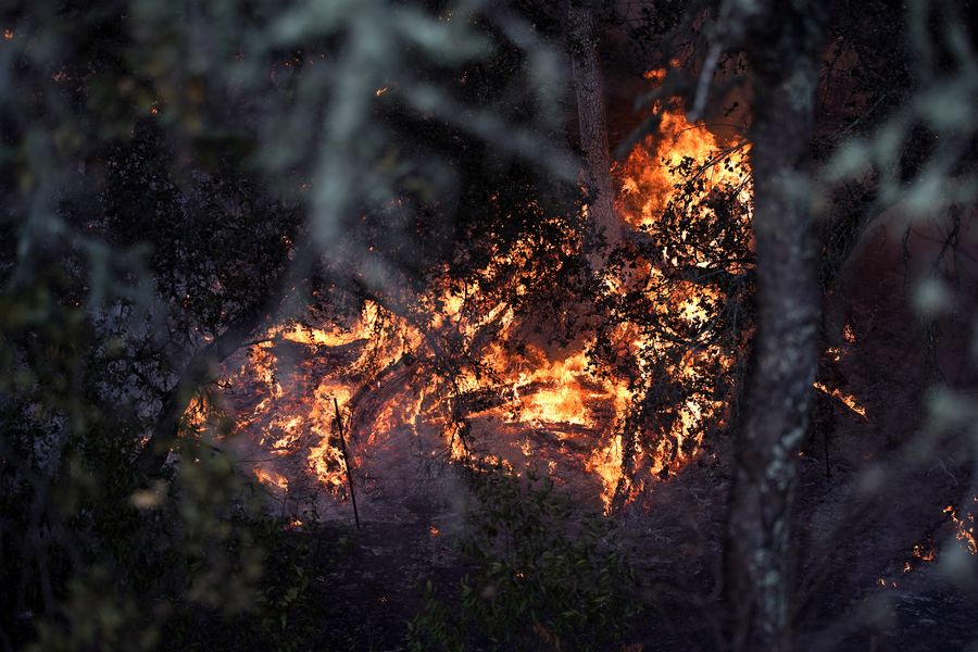 Photo taken on Oct. 24, 2019 shows a fire in Sonoma County, the U.S. state of California. (Photo by Li Jianguo/Xinhua)