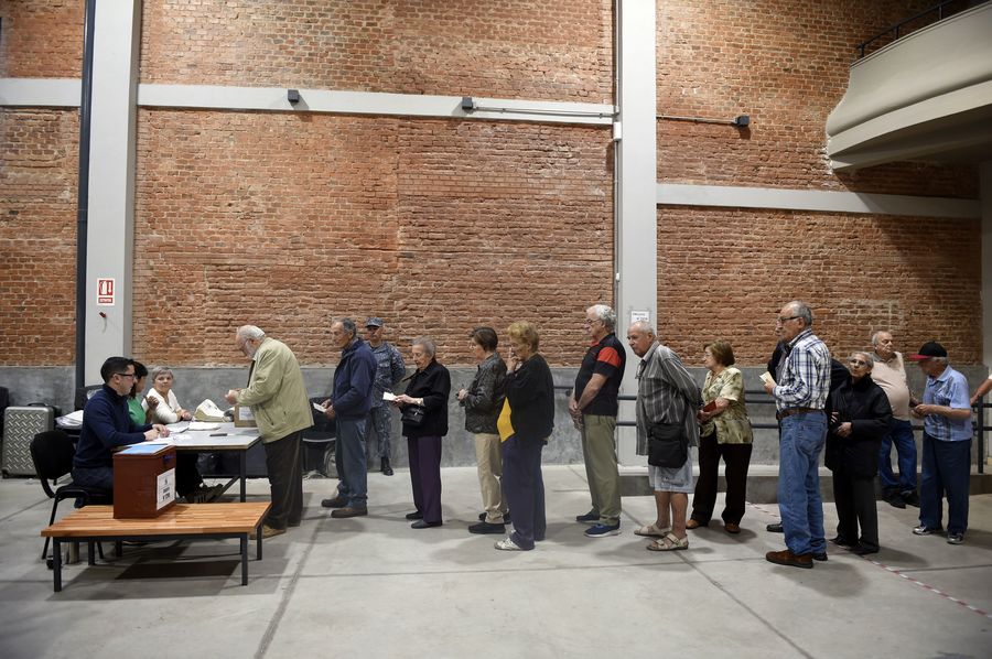 People wait to cast their votes during the presidential and parliamentary elections, in a voting station, in Montevideo, Uruguay, October 27, 2019. (Xinhua/Nicolas Celaya)