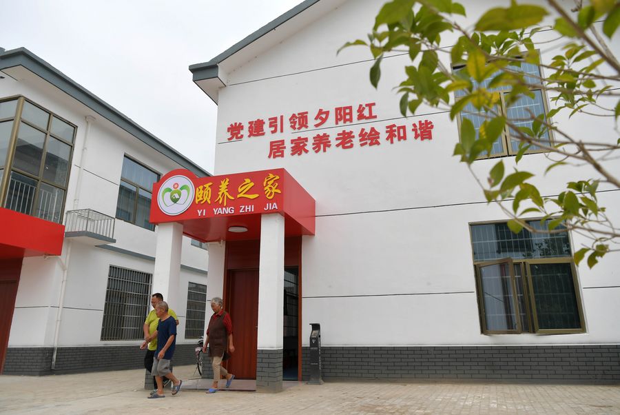 People walk out of a nursing home after having a meal in Qianjin Village of Nanchang County in Nanchang City, capital of east China's Jiangxi Province, Oct. 6, 2019. A total of 103 elderly care service centers have been established so far in Nanchang County. (Xinhua/Peng Zhaozhi)