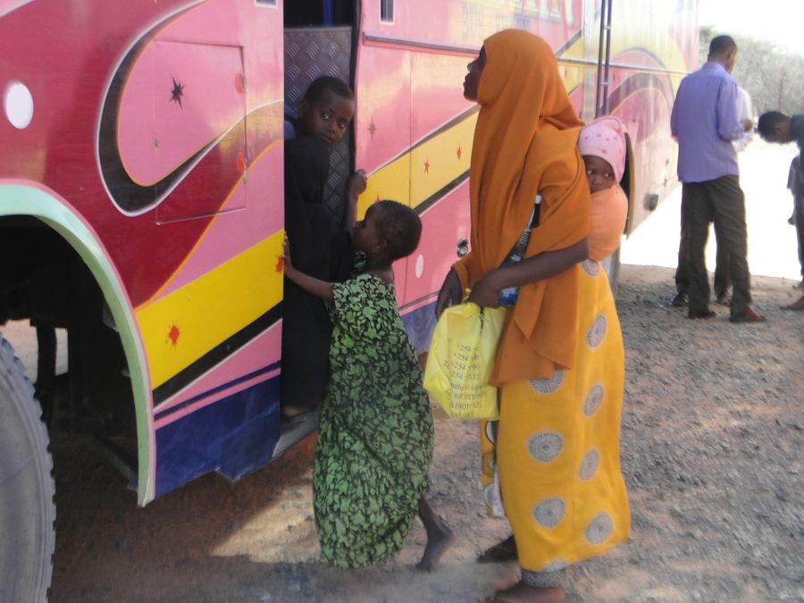 The photo shows Somali refugees prepare to get on a bus heading for Somalia at Dadaab in Garissa, Kenya, on July 1, 2016. (Xinhua/Stephen Ingati)