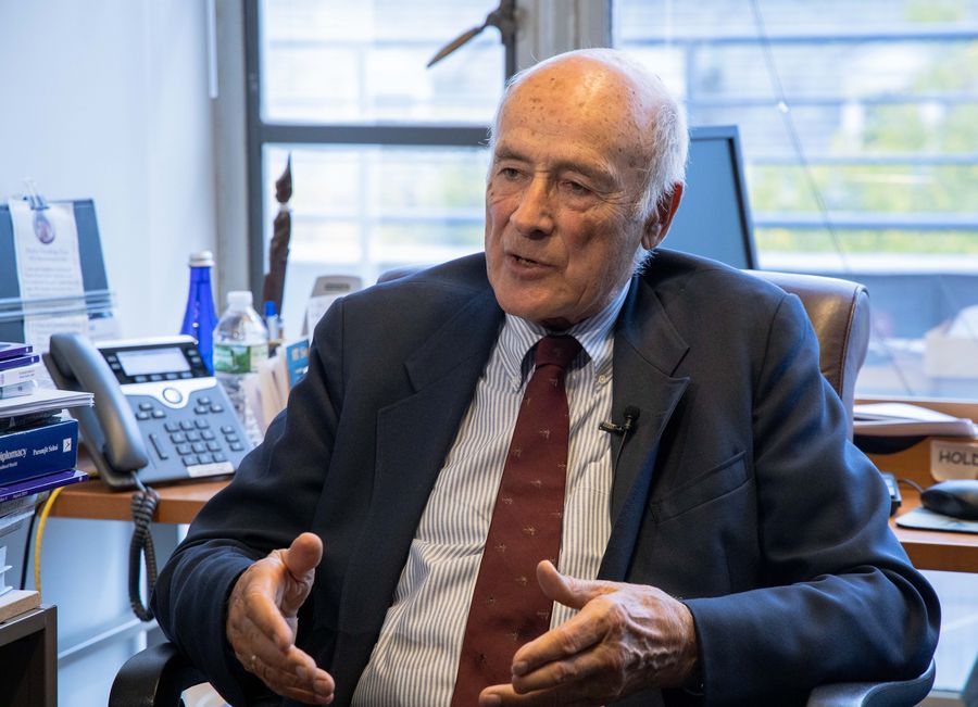 Prof. Joseph Nye speaks in an interview with Xinhua at Harvard University in Massachusetts, the United States, Oct. 8, 2019. (Xinhua/Xie E)