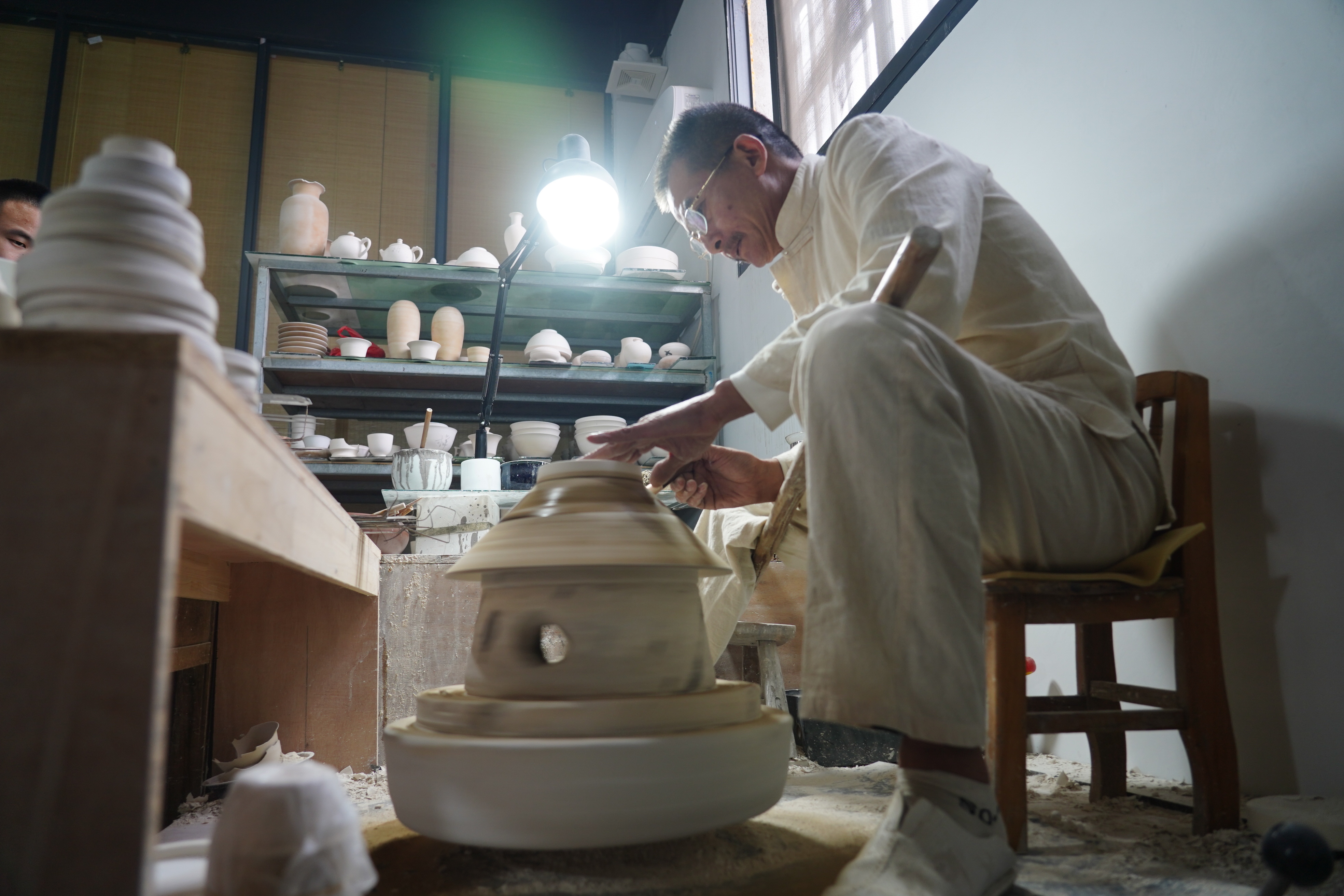 After years of practices, Xiong Guoan, inheritor of thin body porcelain in east China's Jiangxi, possesses an amazing skill of making thin body porcelain with a thickness of about 0.15 millimeters.