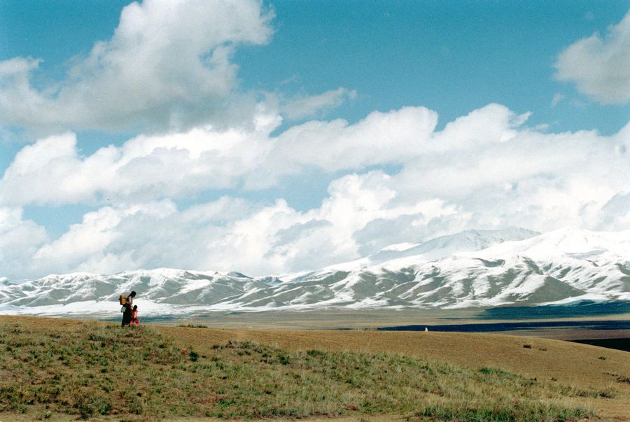 File photo released by Xinhua on April 16, 1999 shows a woman of the Tibetan ethnic group sending her child to Hope Primary School in Layihai Village of Gonghe County in northwest China's Qinghai Province. More than 90 percent of the local children at the school age have gone to boarding schools in Layihai Village since 1990s, thanks to the aid of the Project Hope. (Photo by Wang Jingye/Xinhua)