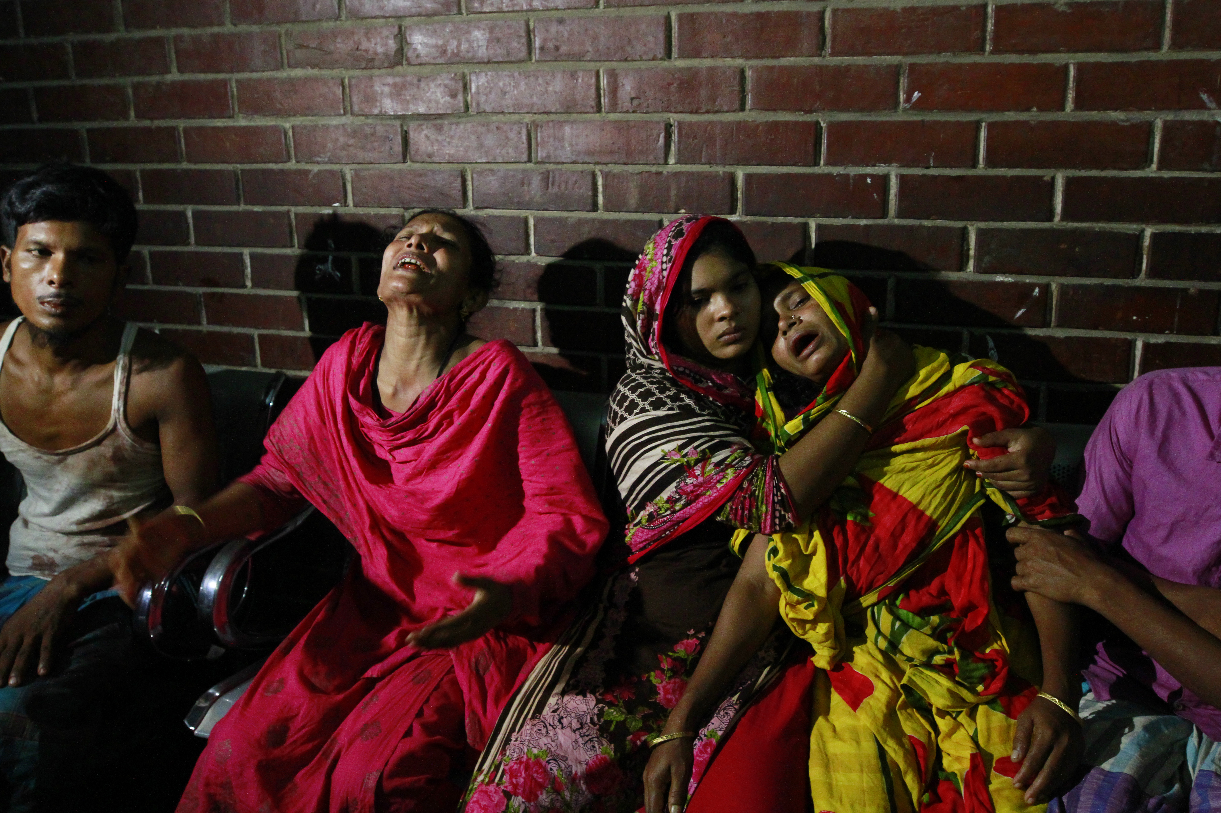 Family members of gas cylinder blast victims wait at a hospital in Dhaka, Bangladesh, Oct. 30, 2019. At least five people including four children were killed and 10 more people were injured when a gas cylinder exploded in Dhaka on Wednesday evening, an official said. The gas cylinder exploded when a roadside vendor was inflating balloons. (Str/Xinhua)