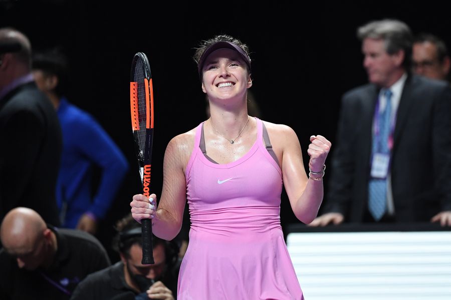 Elina Svitolina of Ukraine celebrates after winning the women's singles round robin match against Sofia Kenin of the United States at the WTA Finals in Shenzhen on Nov. 1, 2019. (Xinhua/Liang Xu)