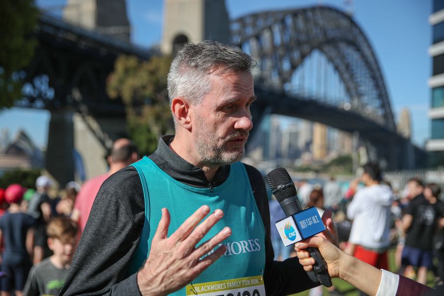 Peter Osborne, Blackmores managing director in Asia, takes an interview with Xinhua on Sept. 15, 2019. (Xinhua/Bai Xuefei)
