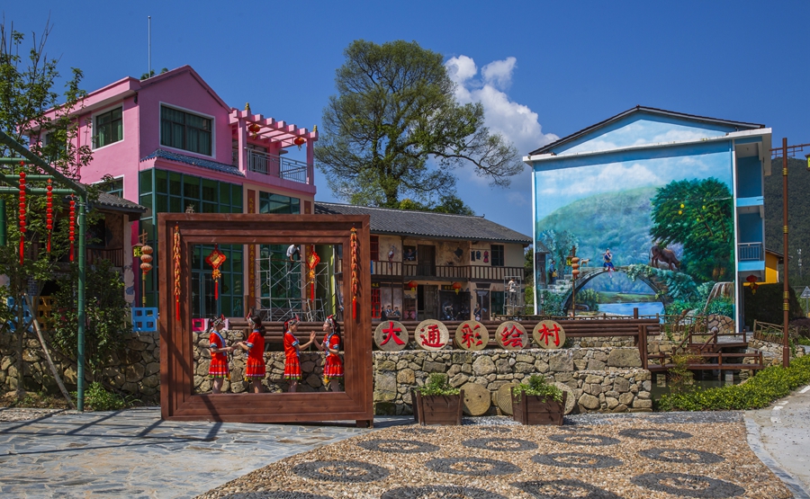 Photo taken on June. 4, 2019 shows a wall painting at Datong Village of Jinzhu She Ethnic Group Township in Le'an County, east China's Jiangxi Province. (Zhang Zequn/Handout via Xinhua)