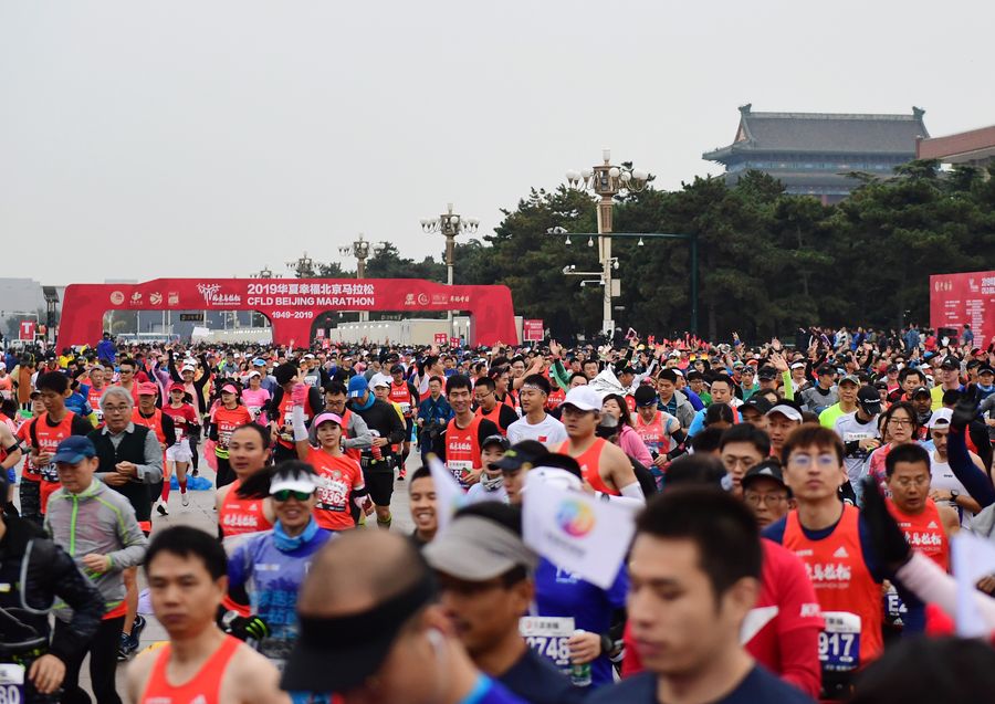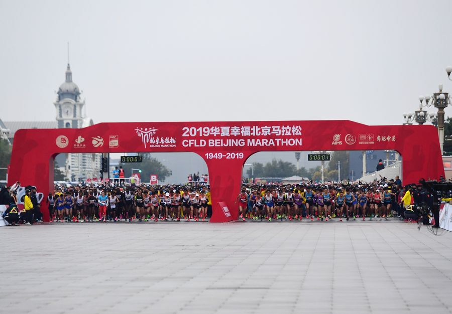 Participants start at the Tiananmen Square during 2019 Beijing Marathon in Beijing, capital of China, Nov. 3, 2019. (Xinhua/Zhang Chenlin)