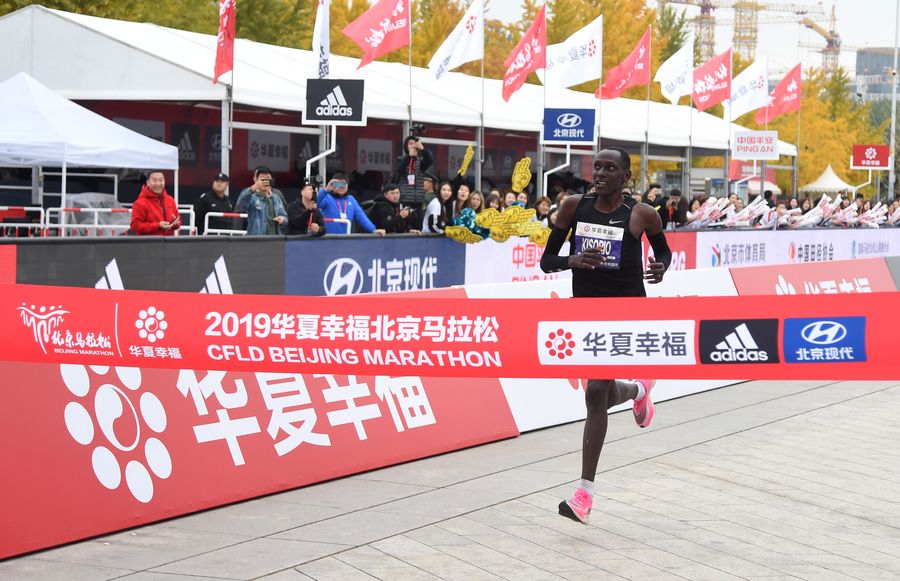 BEIJING, Nov. 3 (Xinhua) -- Kenyan runner Mathew Kipkoech Kisorio clocked two hours, seven minutes and six seconds to break the men's course record at the 2019 Beijing Marathon here on Sunday.