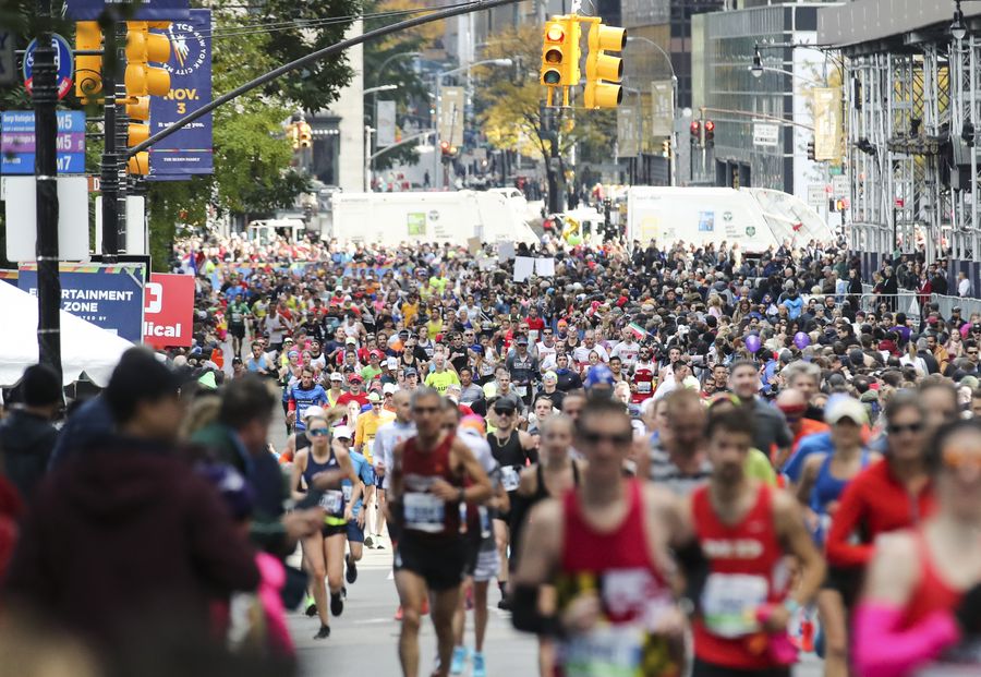 Participants compete during the 2019 TCS New York City Marathon in New York, the United States, Nov. 3, 2019. Over 50,000 participants attended the race this year. (Xinhua/Wang Ying)