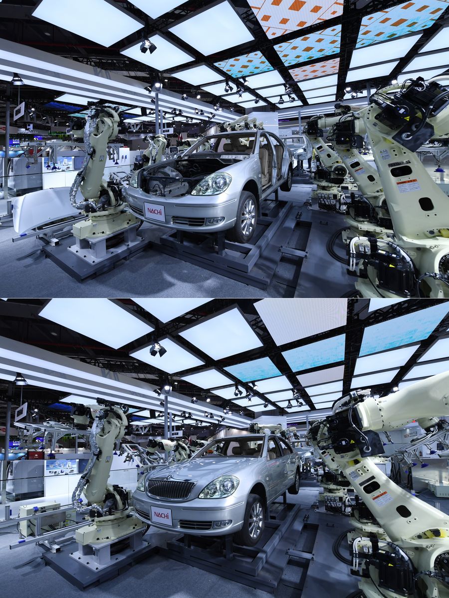 Intelligent manufacturing company such as Nachi from Japan brings several newly developed robots, including high-speed spot welding SRA series robots which can automatically assemble a vehicle.