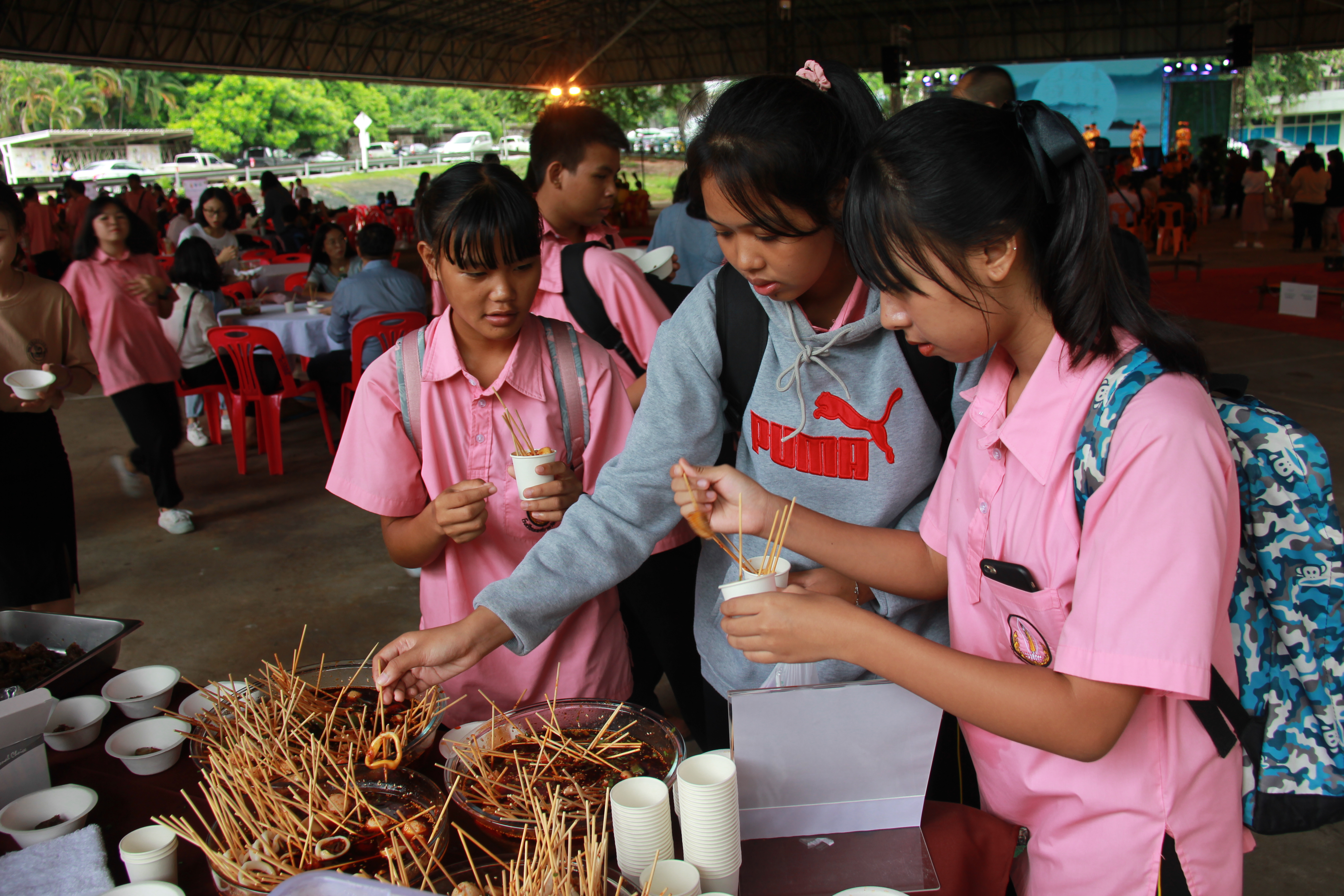 Thai students taste famous Sichuan dish "boboji" during the third Chinese Kitchen Food and Cultural Festival held by the Confucius Institute at Khon Kaen University in Khon Kaen, Thailand, on Aug. 30, 2019. (Xinhua/Yang Zhou)