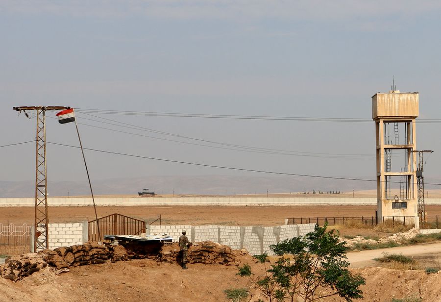 A Syrian soldier is seen upon deploying on the Syrian-Turkish border in the countryside of Qamishli city in al-Hasakah province, northeastern Syria, on Oct. 28, 2019. (Str/Xinhua)