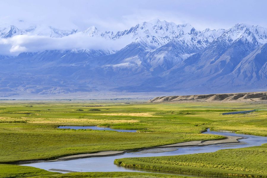 Photo taken on June 30, 2019 shows the view of Tagarma Wetland in Taxkorgan Tajik Autonomous County of northwest China's Xinjiang Uygur Autonomous Region. (Xinhua/Hu Huhu)