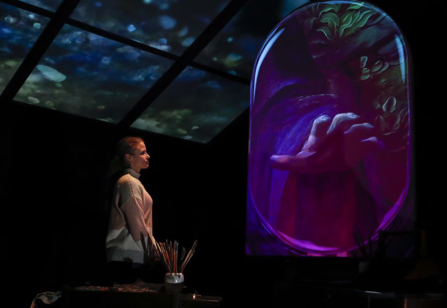 Photo taken on Nov. 5, 2019 shows a part of an exhibition in commemoration of Leonardo da Vinci during a press preview at the National Gallery in London, Britain.(Xinhua/Han Yan)
