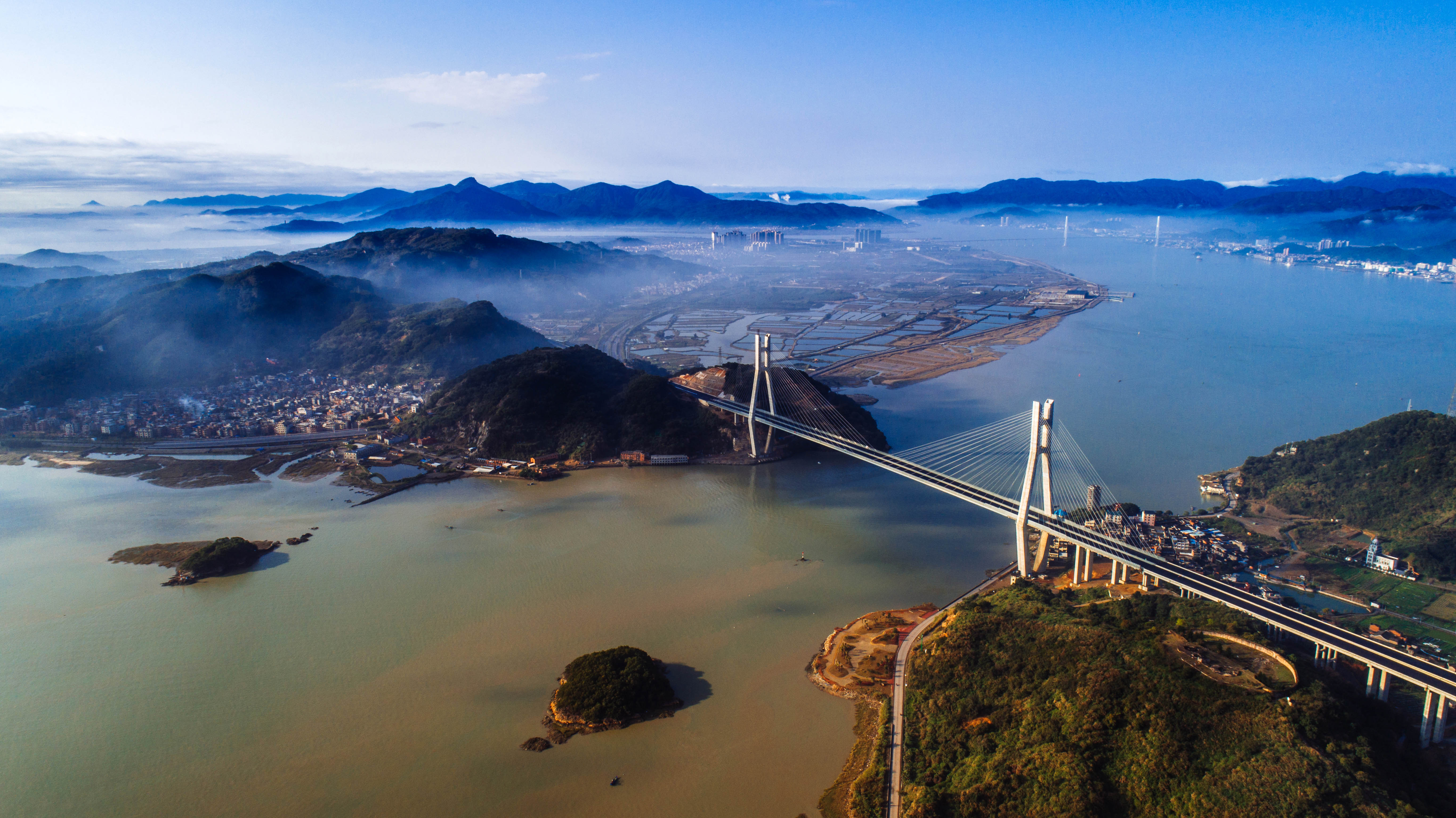 Aerial photo taken on Feb. 15, 2019 shows a bridge in Changmen Village of Guantou township, Lianjiang County of Fuzhou City, southeast China's Fujian Province. (Photo by Zheng Chengle/Xinhua)