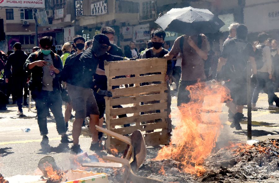Rioters set fire at street in Sai Wan Ho, south China's Hong Kong on Nov. 11, 2019. (Xinhua)