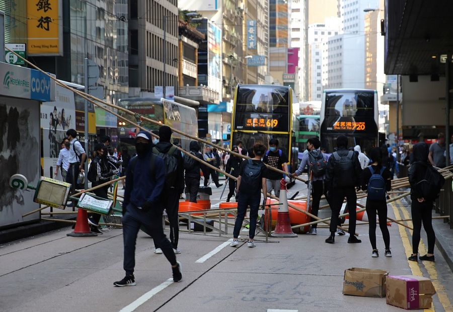 Rioters block the traffic in Central district of China's Hong Kong, Nov. 11, 2019. (Xinhua)