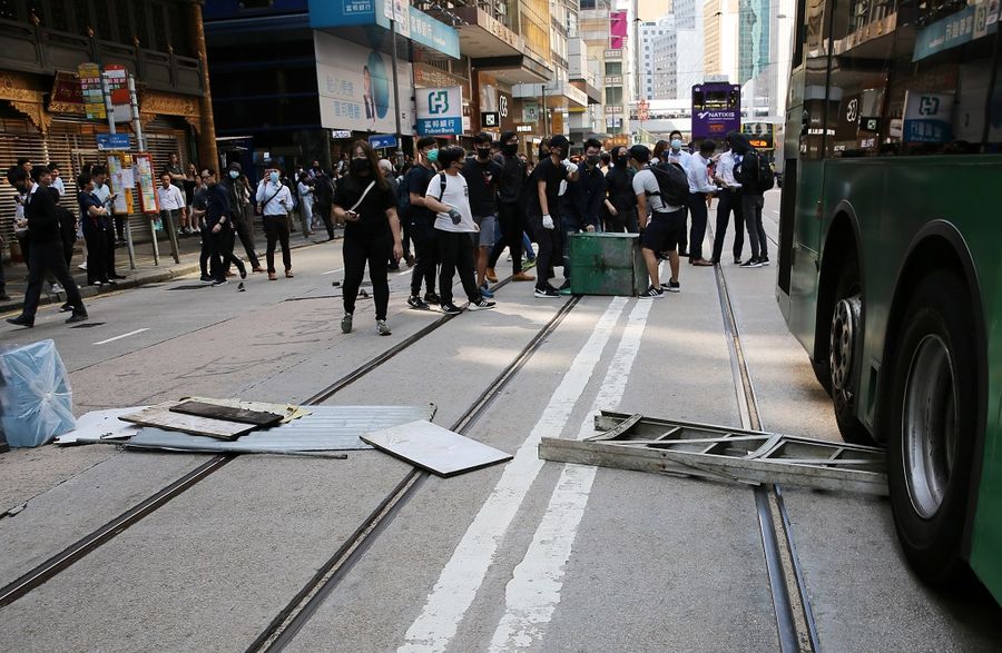 Roads were cut off with garbage and bricks in various districts, including a traffic artery linking the Hong Kong Island and Kowloon. Heavy smoke could be seen billowing up as radicals set fire to barricades they erected. The disruptions led to over 100 bus routes being suspended or diverted.